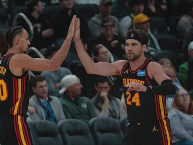 在這場比賽當(dāng)中,老鷹隊(duì)有6人得分上雙,他們是球隊(duì)獲勝的主要功臣!丹尼爾斯這位防守大將全場10投7中,砍下兩雙14分10籃板,外加三助攻,三蓋帽!杰倫約翰遜,這位新鷹王全場17投7中,砍下20分5籃板九助攻兩搶斷的全面數(shù)據(jù)。球隊(duì)中鋒大將奧孔武全場14投9中,砍下21分9籃板一助攻三搶斷兩蓋帽!還真都是攻防一體?。∥挚说谋憩F(xiàn)也很亮眼,他全場14投9中三分球9投5中,砍下23分2助攻。麥克克倫姆全場11中5,砍下18分兩籃板8助攻一搶斷一蓋帽。球隊(duì)替補(bǔ)大將里薩謝拿下12分5籃板,這位狀元郎不堪大用啊,還真是挺一般的!