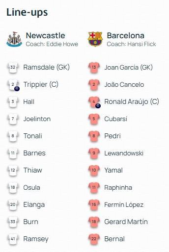 巴薩客戰(zhàn)紐卡:亞馬爾、萊萬、拉菲尼亞首發(fā),佩德里出戰(zhàn)
